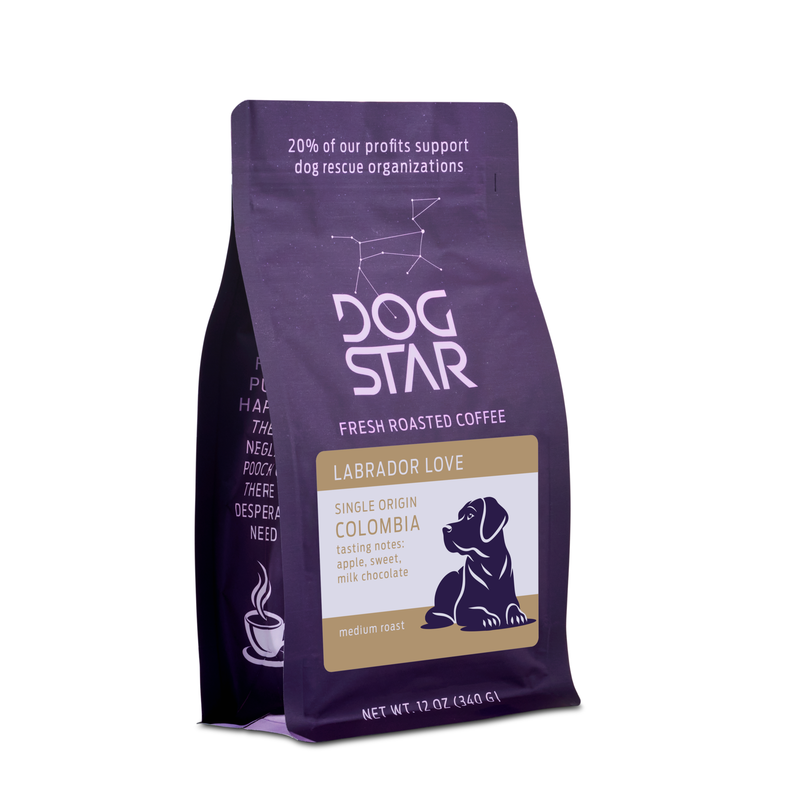 Labrador Love is a medium roast specialty coffee crafted from Colombian beans. Fresh roasted for a bright, lively character, this roast delivers apple-like acidity, gentle sweetness, and smooth milk chocolate notes— warm and welcoming, just like the Labrador.